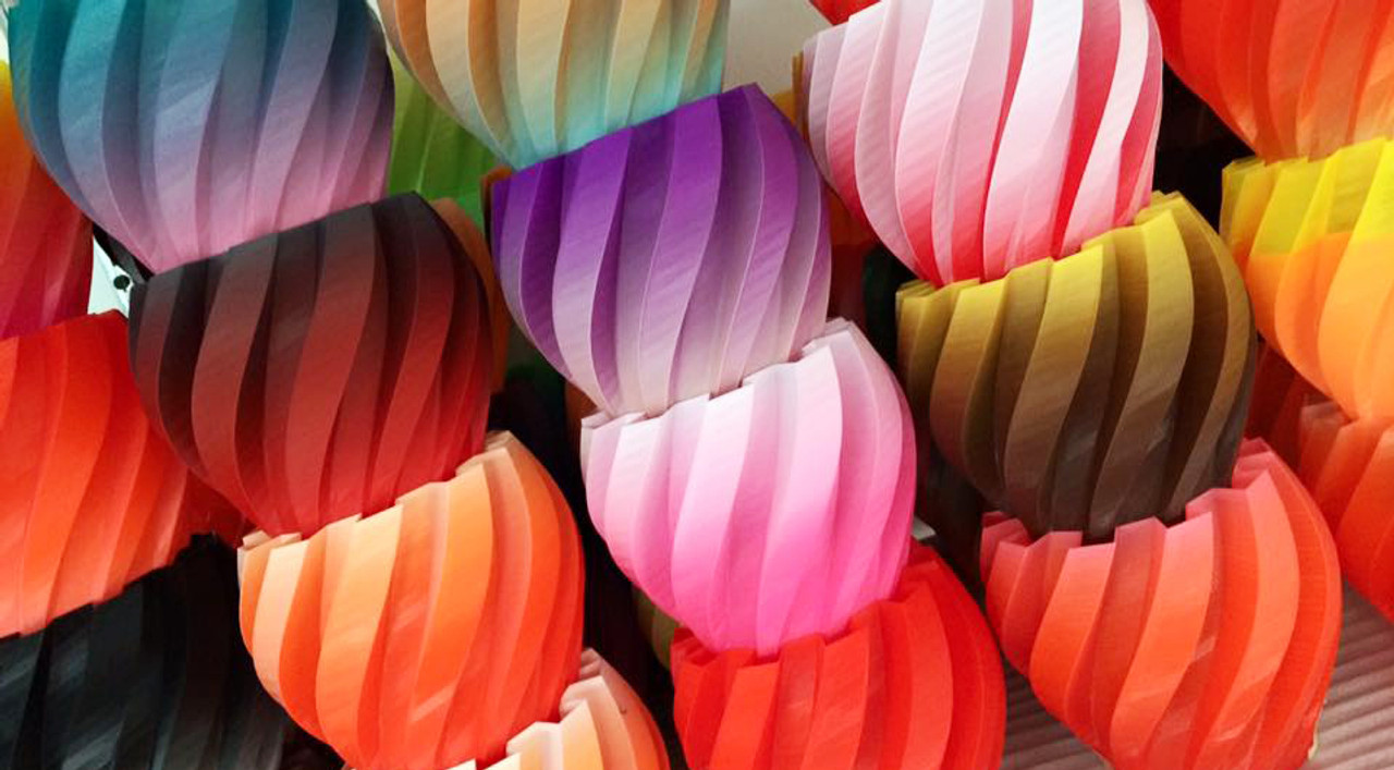 Due to the fact that the Dual-Feed has only 1 nozzle its able to create a color mixed object. With a little help from Builders color mixing software you can print the most outrages color mixed objects. How it works? The color mixing software changes the extruder ratio from both extruders while printing. The print starts with 100% yellow but ends in 100% pink which creates a nice color hybrid (orange) in your object.