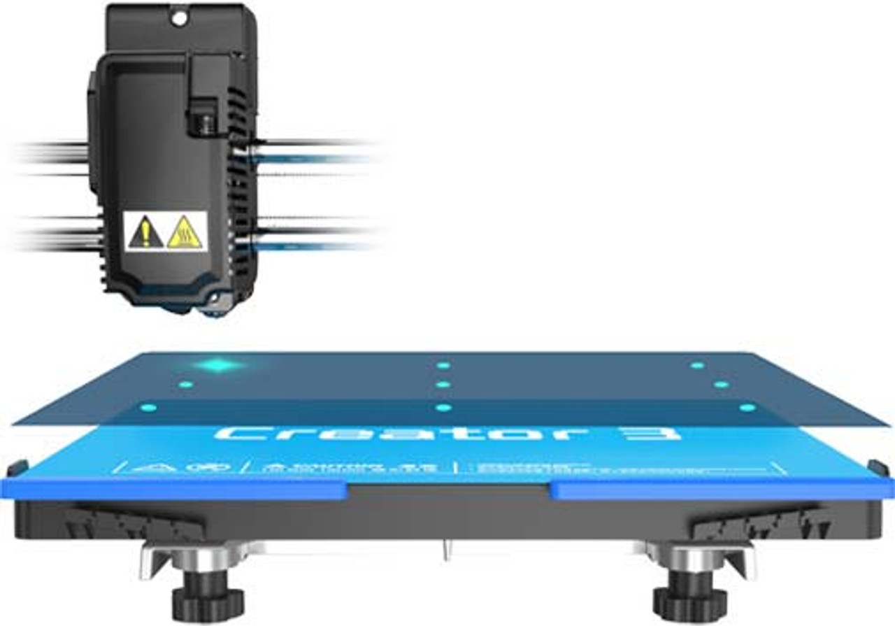 • Auto bed leveling & auto-calibration in Z-axis: creates a uniform build area quickly, ensures better bed adhesion, and higher quality 3d prints.