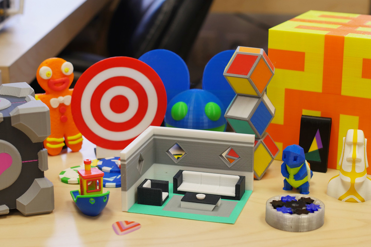 Several multi-color models printed in PLA.
