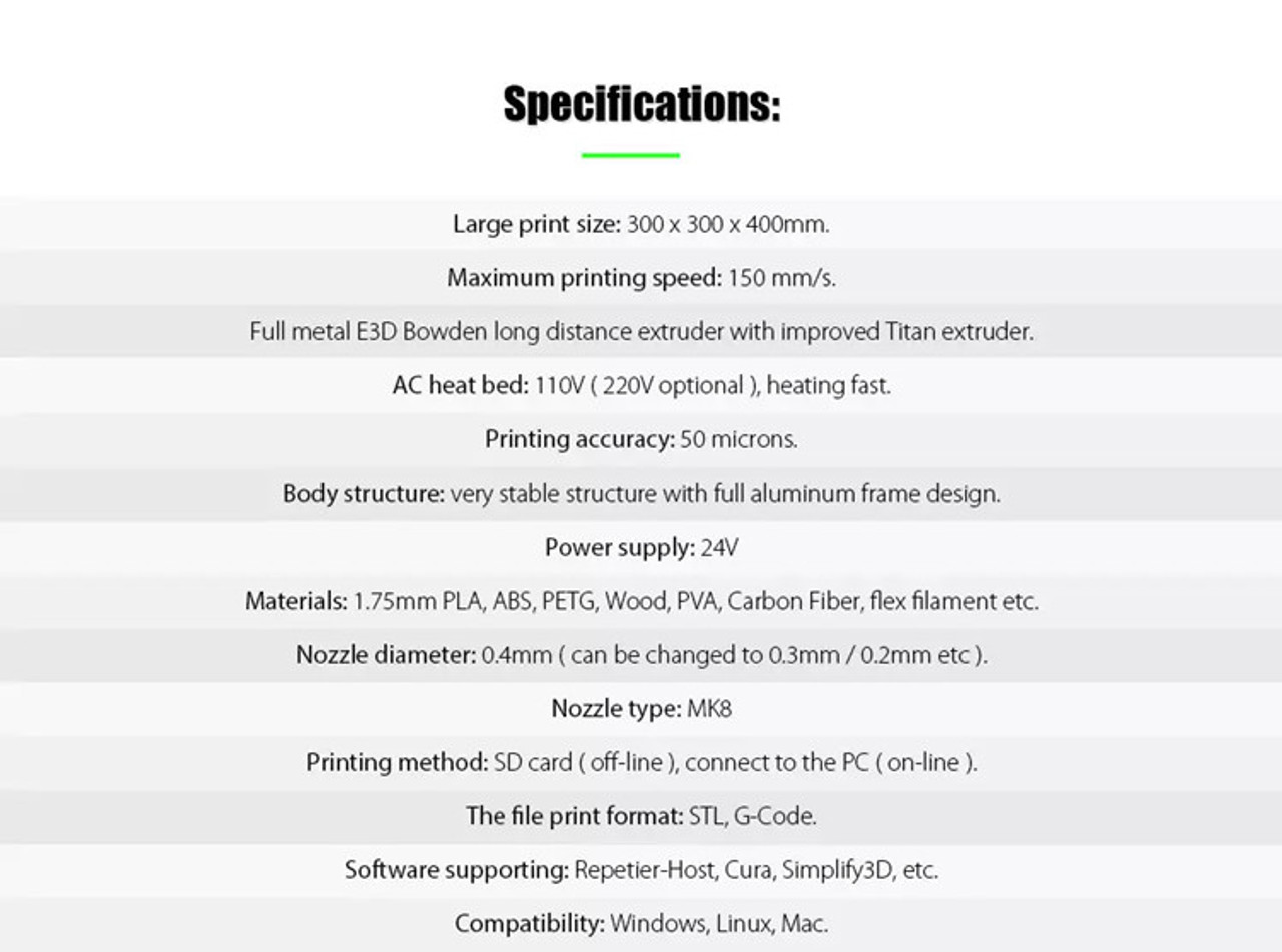 • Build size: 300X 300 X 400mm.